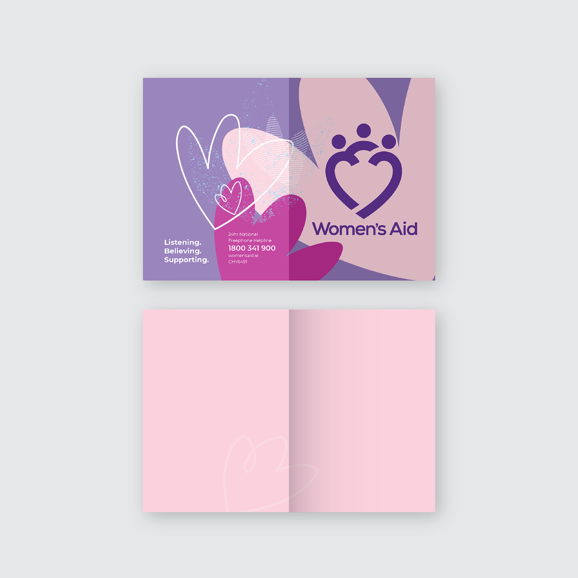 Brief: Design and layout greeting cards for Women's Aid using Women's Aid branding and guidelines, emulating the style of material.